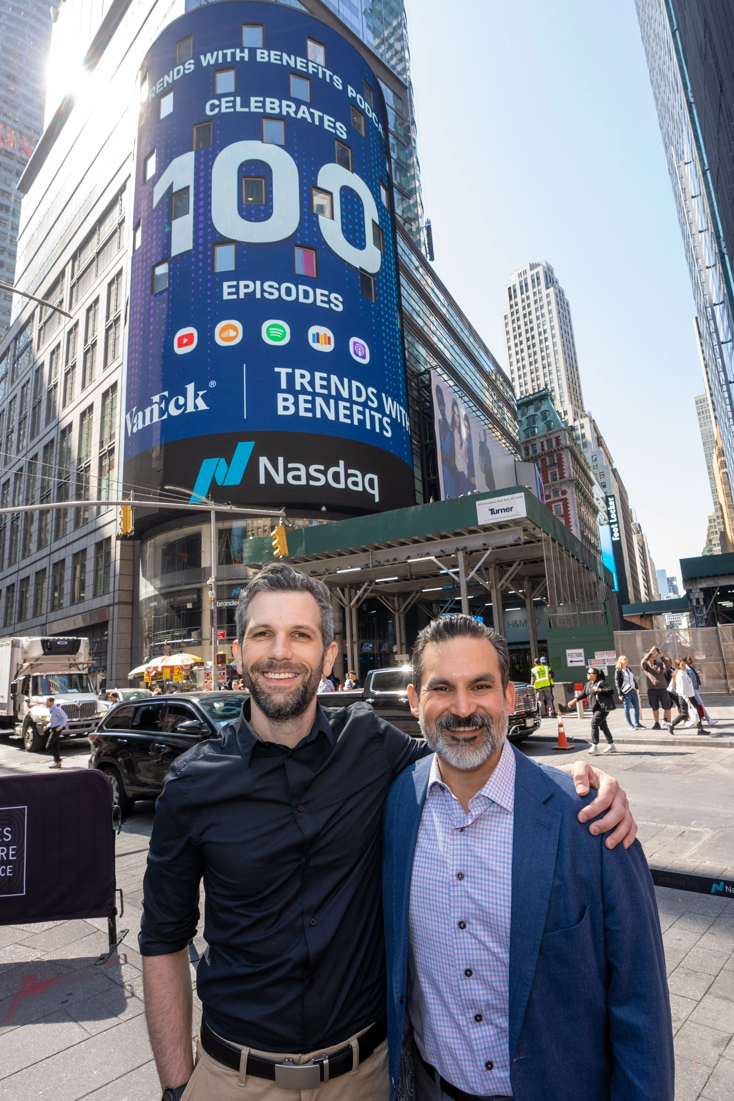 Celebrating co-producing and editing 100 episodes of the “Trends With Benefits” podcast, with host Ed Lopez.